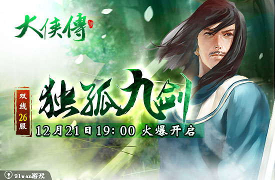91wan《大俠傳》26服“獨(dú)孤九劍”即將于2012年12月21日19:00火爆開(kāi)啟,邀您一同鑄就俠侶傳奇!