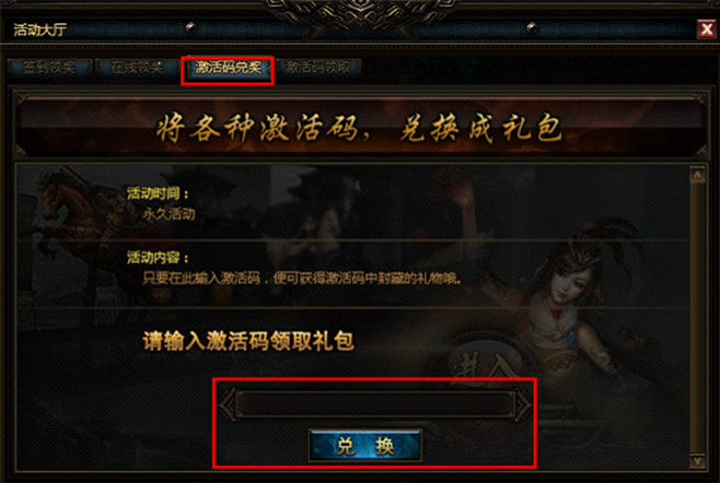 使用方法:點擊游戲界面上方的"活動大廳",在激活碼界面處輸入序列號,點擊領(lǐng)取