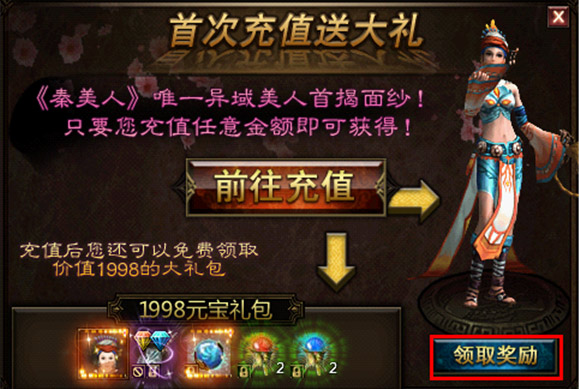 活動內(nèi)容:從開服之日起,第一次在本服務(wù)器中進(jìn)行充值的玩家,不限制任何金額,除了能獲得相應(yīng)的元寶之外,還都將會獲得一份"首充禮包"