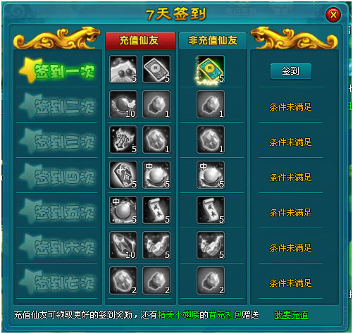連續(xù)登陸 | 累計(jì)登陸前7天 |