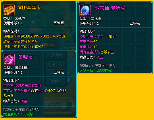 VIP半年卡只要998元寶/張 神獸召喚卡只要588元寶/個(gè) 紫曜石只要598元寶/個(gè) |