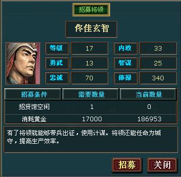 選擇需要招募的將領(lǐng),點擊“招募”即進入武將屬性一覽: