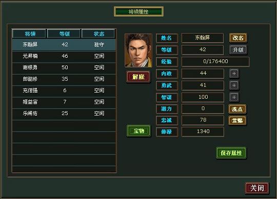 將領(lǐng)升級后,增加屬性點1點。升到N級時,有N*10點屬性。