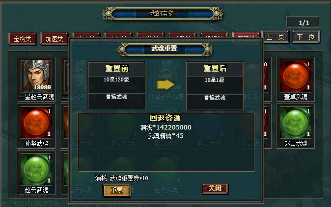 5、新增武魂重置功能。玩家可在包裹內(nèi)選擇6~10星級(jí)的武魂進(jìn)行武魂重置。武魂重置需要消耗【武魂重置券】。武魂重置后將返還所消耗的武魂精魄及銅錢。不同等級(jí)的武魂所消耗的【武魂重置券】數(shù)量不同。