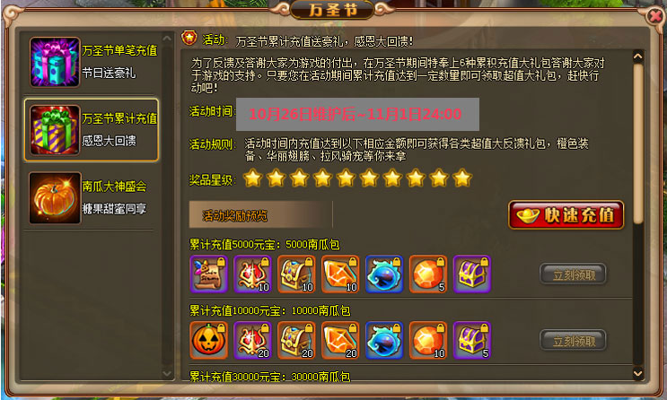 萬圣節(jié)累計充值 超值大回饋