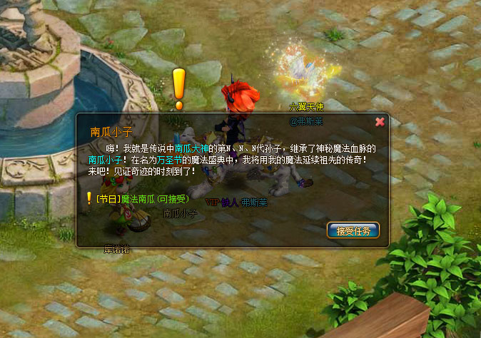 ① 完成桑德小鎮(zhèn)【南瓜小子】的[魔法南瓜]任務(wù),然后將[魔法南瓜車]護(hù)送到天空之城【節(jié)日大使荷莉】處,每人每天可完成10次。