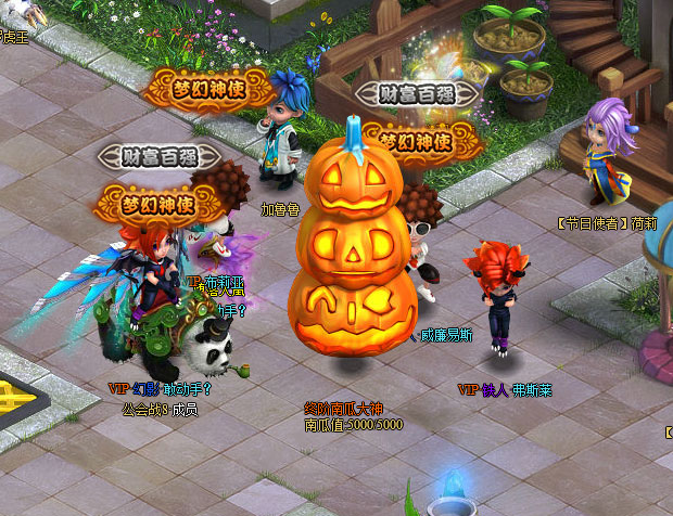 ④ 當(dāng)【南瓜大神】成長(zhǎng)到最高級(jí)狀態(tài)(三層南瓜燈)時(shí),完成次數(shù)前100名玩家將獲得【南瓜禮包】:可獲得初階靈魂結(jié)晶*2,南瓜變身卡,被詛咒的南瓜(可用于在天空之城【寵物使者】處兌換【南瓜精寶寶】)。